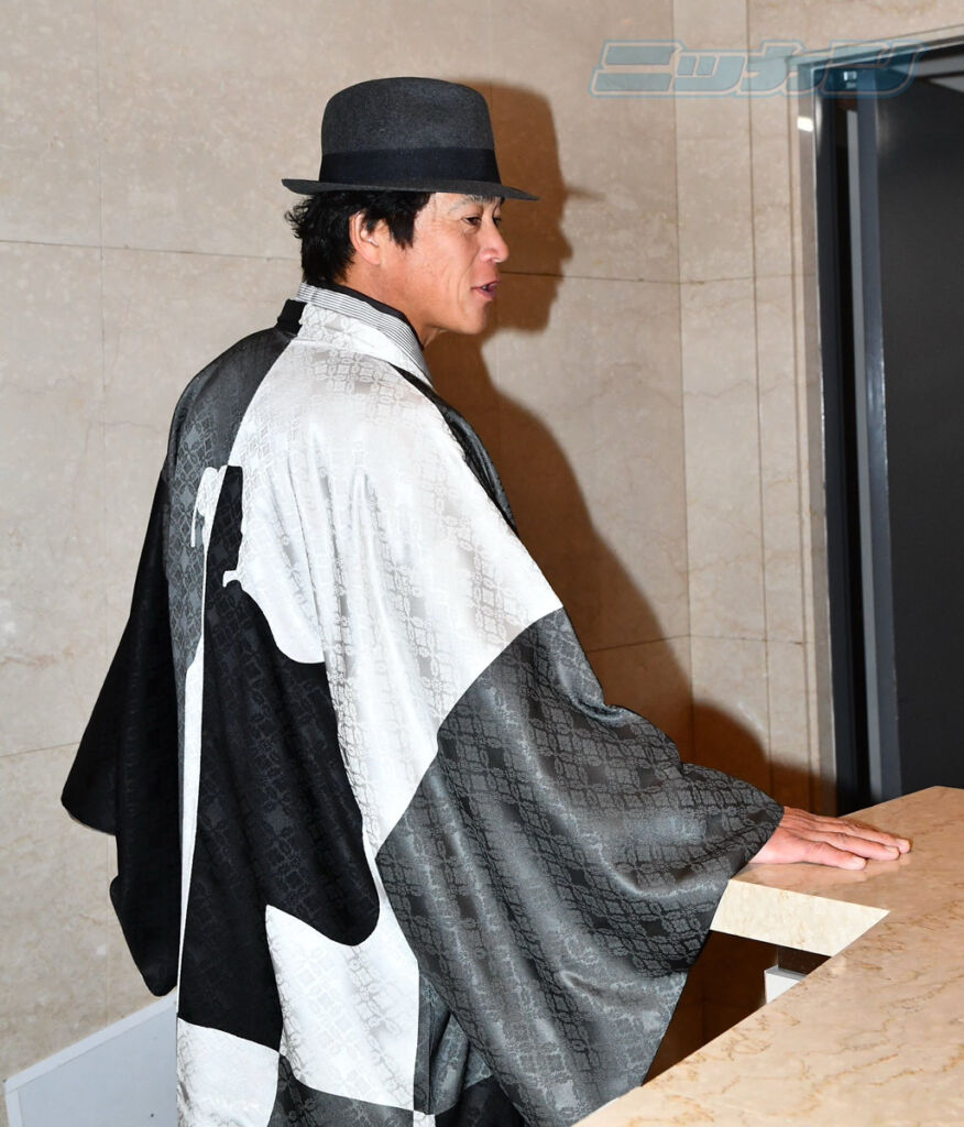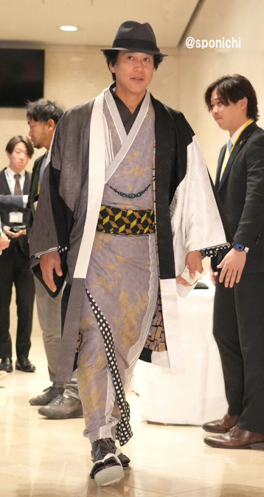 城島CBOはこの日、鮮やかな和装にハットを合わせた粋な装いで登場し、多くの注目を集めました。モノトーンを基調としつつも上品さを感じさせる着付けは、立ち姿にも凛とした雰囲気を与え、和装ならではの奥深い美を表現しています。