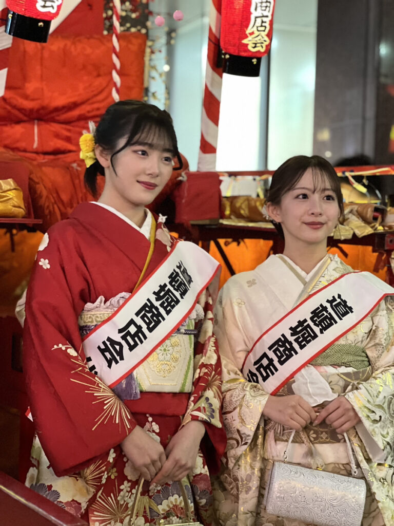 成人の日を目前に控えたお二人は、初々しさの中にも凛とした気品を感じさせる姿で、華やかな宝恵駕籠の場に彩りを添えてくださいました。