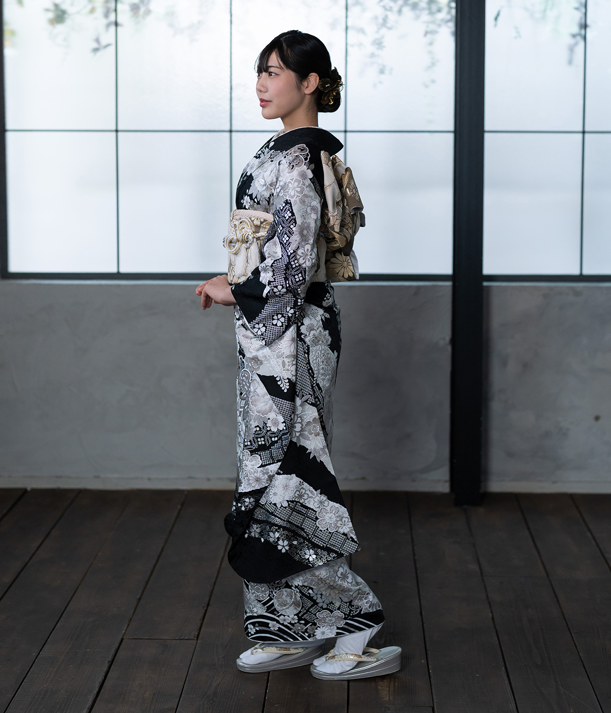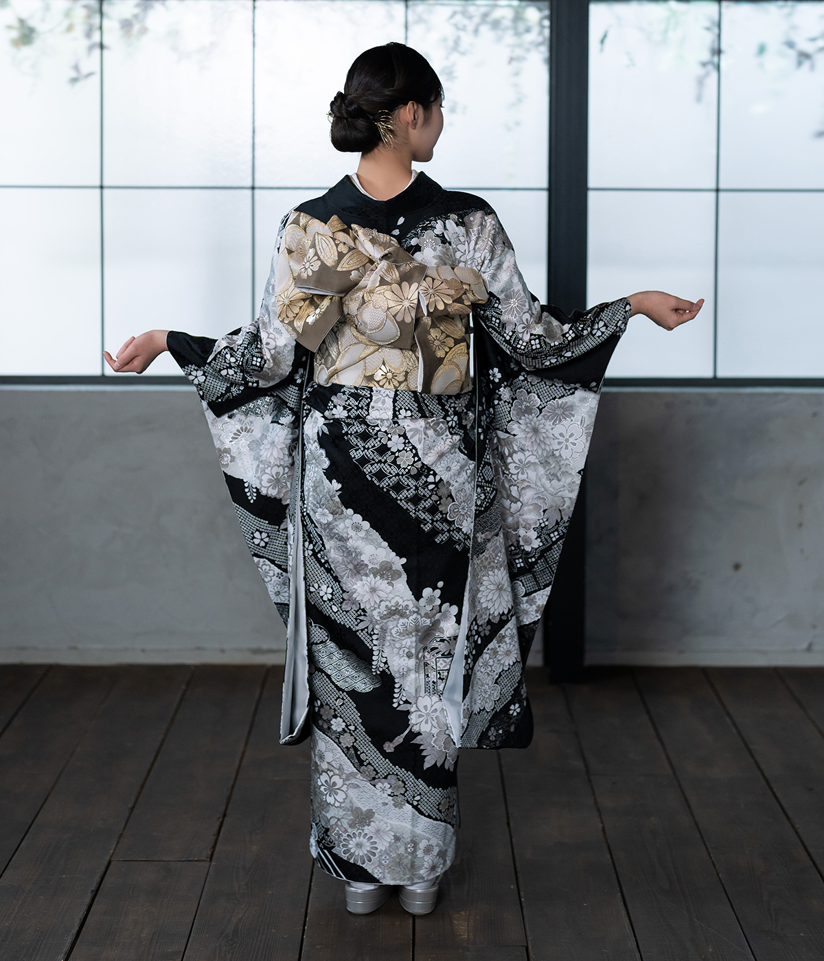 白金振袖は、金彩・銀彩友禅の技法を贅沢にあしらった、和凛の中でも最上級のシリーズです。 気品と華やかさを兼ね備え、まとうだけで周囲を魅了する存在感。人生の節目となる成人式や前撮り撮影、結婚式(親族)のお呼ばれにも最適です。手描き友禅の繊細さに、金銀の輝きが調和した一着は、まさに“本物”を求める大人の女性のための振袖。